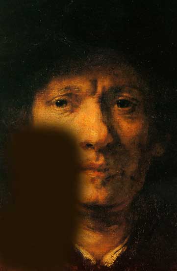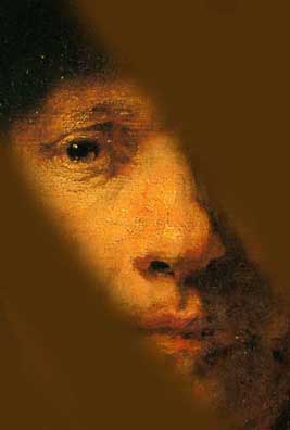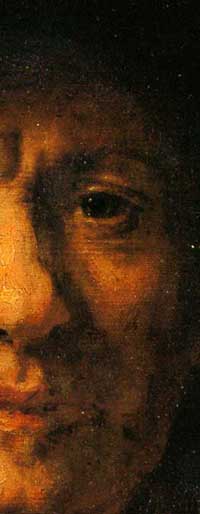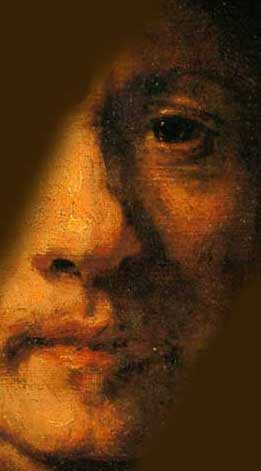 Wild SpeculationWhat I'm about to say is outrageous, but it is a thought that won't go away. When you look at the expression on Rembrandt's face here, it has a familiar ring to it. We have seen this kind of face before. But where? Where have there been painted faces that look upon us and the world with a combination of great power and great tenderness, an undeniable superiority combined with the tenderest of sympathies? Where have we seen faces that seem to look into our souls and find there the innermost unexpressed privacy of our most secret sufferings, and know them, know them all, and embrace them with the broadest of understandings? Where have we seen faces that, while clearly apart from us, are yet still in some profound way joined with our deepest souls? We have seen this in the faces of Jesus, Mary, and the Saints in Catholic religious art. But wait! Rembrandt was painting in a fiercely Protestant country in a fiercely Protestant time. This was a country that had ripped such images from the churches and destroyed them as "idols." Is it remotely possible that Rembrandt has incorporated into his own image the human face of God? -- the face that sees everything and toward everything shines a tenderness born of knowing all suffering? Is is possible that Rembrandt, in some unimaginably subversive way, has hidden the florid compassion of Catholic art inside the Protestant austerity of this self-portrait? Seen up close, the painting would have no greater radiant charge to it if he suddenly parted his cloak to reveal a naked, bleeding, and compassionate heart. Is this possible? -- or is this just Rembrandt hiding, in the closest expressions of his face, the great open secret that the heart has no secrets? |