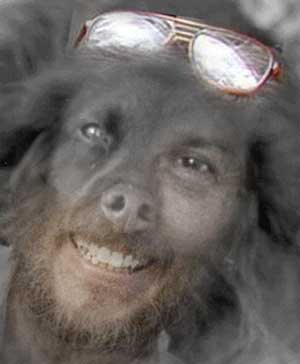 Perhaps it is not so embarassing, then, that an article that started by being about Rembrandt ends by being about me. I wrote this article for no reason other than that, during a week alone the summer of 2001, the one thing I most wanted to do each morning on waking was spend time reflecting on this particular Rembrandt self-portrait. Somehow, Rembrandt became part of my attempt in midlife to reflect on my life and begin to integrate myself. The result, though it uses some of the language of intellectual analysis, is unabashedly personal. I loved being immersed in the depth, seriousness, tragedy, and complexity of Rembrandt's self-portrait, and I loved responding to it with a somber, multifaceted self-portrait of my own. But I found my self-portrait hard to live around. Although deep, it is also narrow. Even in the presence of my mother's excruciating six-year decline into Alzheimer's (which darkened the reflections of this essay), the sprawling, resilient, fortunate comedy of my nature kept provoking me to make additional self-portraits to balance the almost grim seriousness of the first one. I can justify these only by saying that they arose as an irrepressible and inexplicable response to writing this article and that, somehow, they are responses to the intersection of Rembrandt with my life--just as Part I of this article is. Rembrandt, after all, experimented with self-portraits that looked wildly different from one another. These whimsical self-portraits also create expressions that could never have taken place on a person's face. And, like the first portrait, they also integrate widely disparate elements: One integrates two faces across 50 years. The next two integrate faces across species. All three use the same smile. |