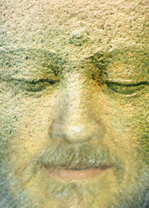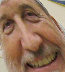 The sense of "being seen by Rembrandt" depends in large part on seeing yourself in Rembrandt -- in the sense that, out of the painting's possibilities, you see reflected back to you the particular emotional gestalt that you are primed to respond to -- either as a reflection of your feelings or as the projected counterpart to them. Wherever we look, we see, in part, ourselves, our possibilities, and our shadows. Perhaps it is only by looking deeply into something else that we can see ourselves. It was inevitable that I would try imagining Rembrandt's self-portrait as my own. This lets me leave the high tragedy of his portrait with a Satyr play, a little dog-dance of those more fortunate than the mythical figure whose worn face we have meditated on. The final illustration brings out the warmth and kindness of Rembrandt's left eye -- the smiling eye -- which is used here unchanged. The less-confident right eye is mine. |